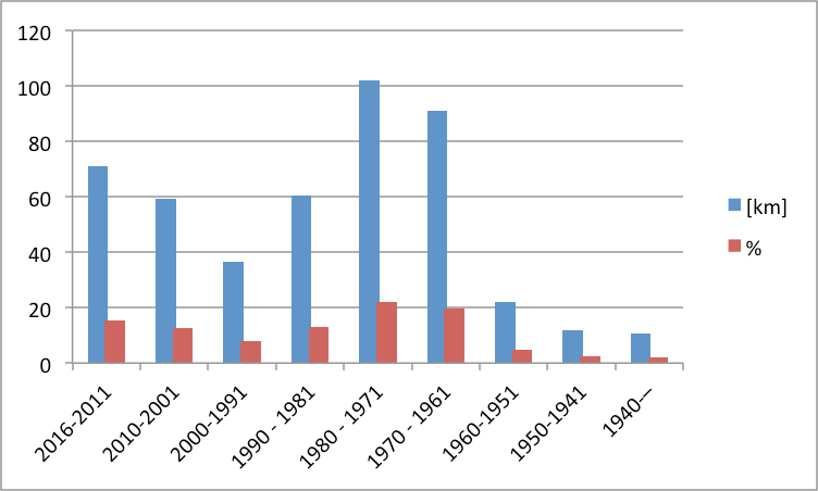 Nedenstående tabel viser den aldersmæssige fordeling af ledningsanlæg.